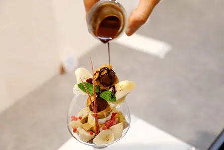 该圣代专卖店由专业甜点师打造,距离“大森”站约8分钟步程。时令水果的季节限定口味,一整年都能品尝的日本茶香蕉巧克力口味,以及生菓子、烧菓子、巧克力、果酱等,杯中的每一个元素均出自大师的巧思与巧手。它们美味美观且方便食用,一口大小,细致周到。