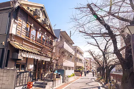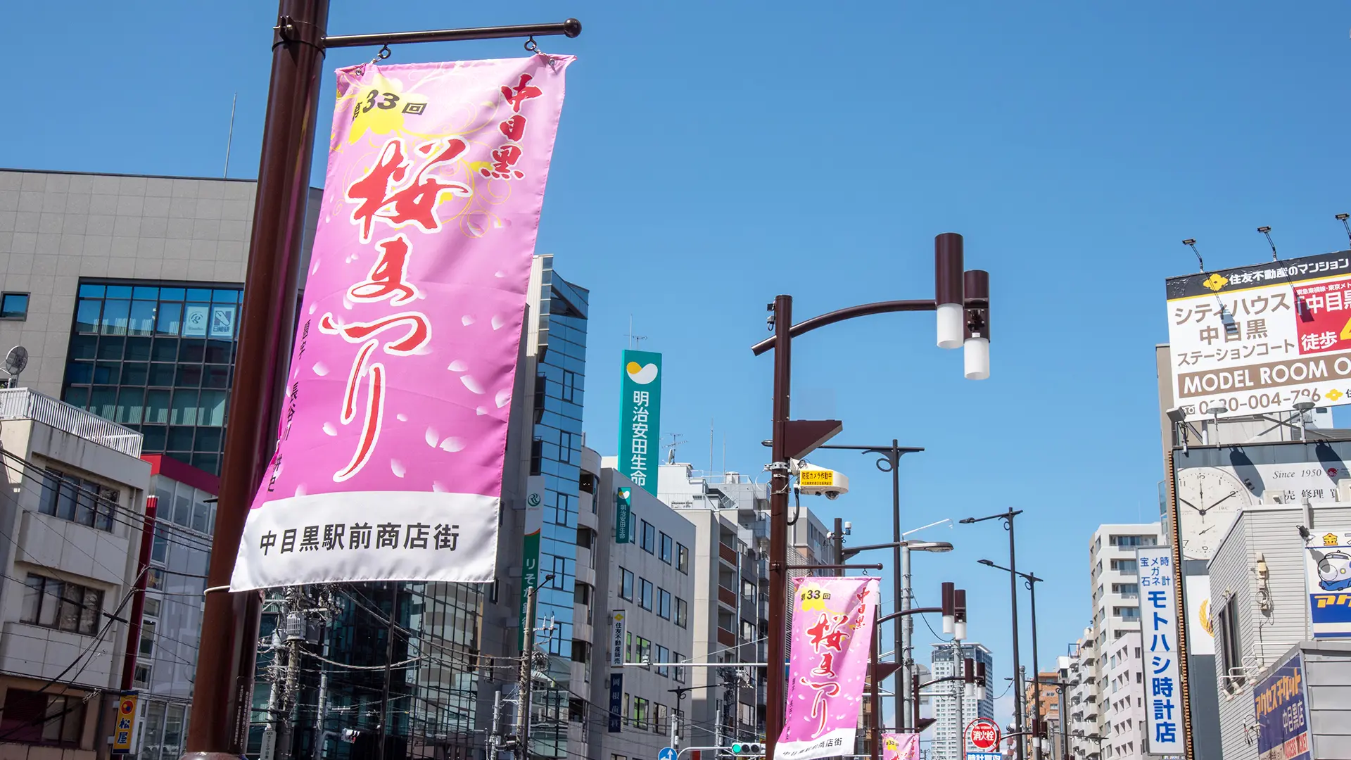 中目黑站前商店街是东京著名赏樱胜地之一。车站前街道及目黑川沿线一带聚集了个性十足的咖啡馆、礼品店、艺术画廊、日式酒馆,是一处吸引潮流人士及艺术爱好者的魅力街区。这里保留了老字号日式糕点铺和拉面店,展现了现代与传统交织的独特氛围。每逢樱花季,游客们品尝着小吃和美酒欣赏樱花,人们穿着和服往来穿梭,热闹非凡,这是一处充满惊喜的好去处。