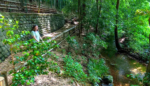 南泽涌泉群还滋养着周围南泽绿地保护区的自然环境,这片森林地带拥有由浓密树林形成的林荫道。本次我们访问了“东久留米自然交流志愿者”丰福正己先生与下村央行先生,他们为了将这些美丽的涌泉与绿地留给下一代,20多年来一直致力于保护活动。两位在带领我们参观南泽绿地保护区时,讲述了南泽涌泉群的珍贵性、以及东久留米市民积极参与自然保护活动的举措。