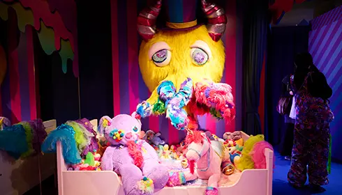 KAWAII MONSTER LAND以色彩与混沌世界为概念而设计,营造出一种随时都有新发现的感觉。每个细节都经过精心设计,现场还设有能与缤纷怪物周边合影的拍照打卡点。虽然该空间非常适合拍照,但它不仅是单纯的拍照背景,更是制作人增田赛巴斯汀对于其可爱世界观的体现。KAWAII MONSTER LAND是一个以“体验”本身为核心的场所,它既是游乐场,也是表演空间,同时也是沉浸式装置艺术。您不妨踏入其中,尽情沉浸在这个充满多重感官刺激的世界里。