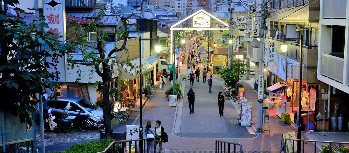 谷中银座距离从东京站乘坐JR山手线15分钟到达的日暮里站5分钟路程。