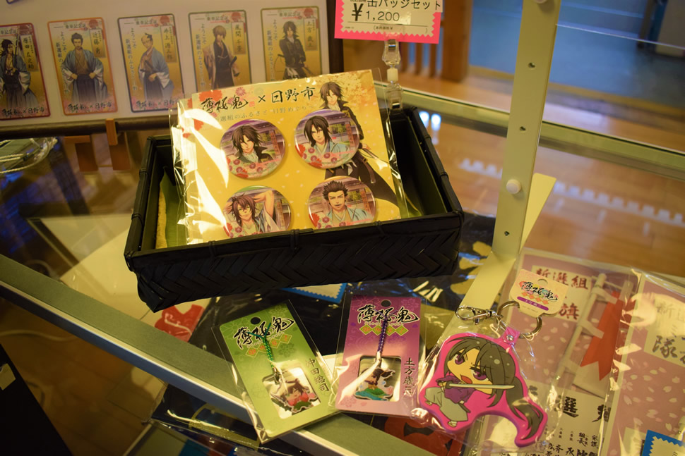 纪念品商店中,为您准备了诸如“薄樱鬼”徽章等新选组与动漫的联名商品。商品琳琅满目,仅限此地方可购买。除“ 薄樱鬼”商品外,还为您准备了人气商品“岁三乌冬面”等日野市的推荐产品。