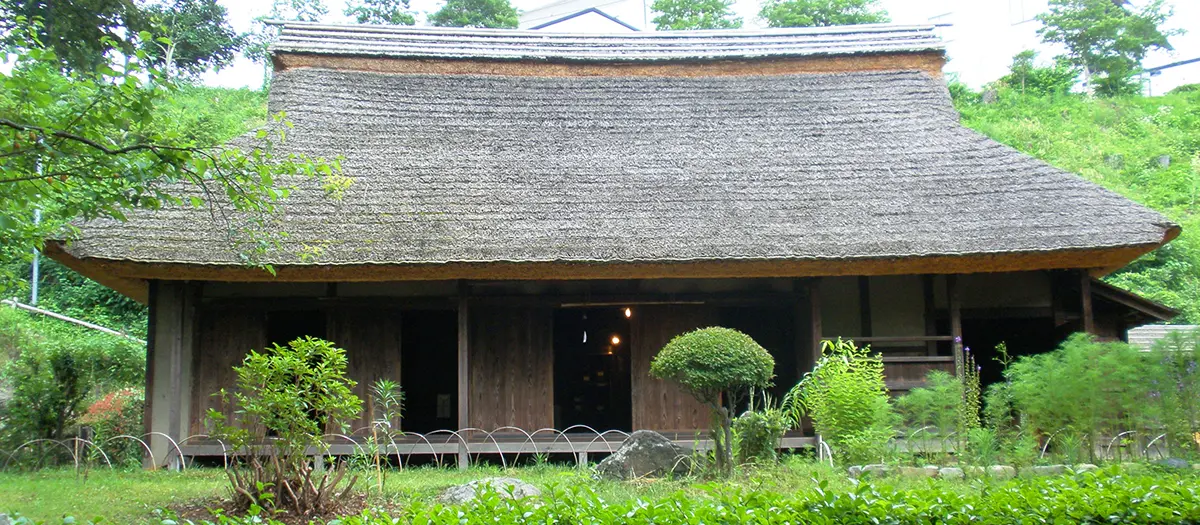 “旧宫崎家住宅”从建筑风格来看,可以认为其建于19世纪初左右。这座住宅原本为青梅市成木地区夕仓的普通农家所有,后被赠与青梅市,于昭和54(1979)年迁移至现地址。旧宫崎家住宅分为大厅、起居室和卧室三个房间,这种构造可以看到当时农民的生活。另外,住宅的屋顶采用被称为混铺或虎铺的方式铺设,就是将杉树皮交错地铺在屋顶上。