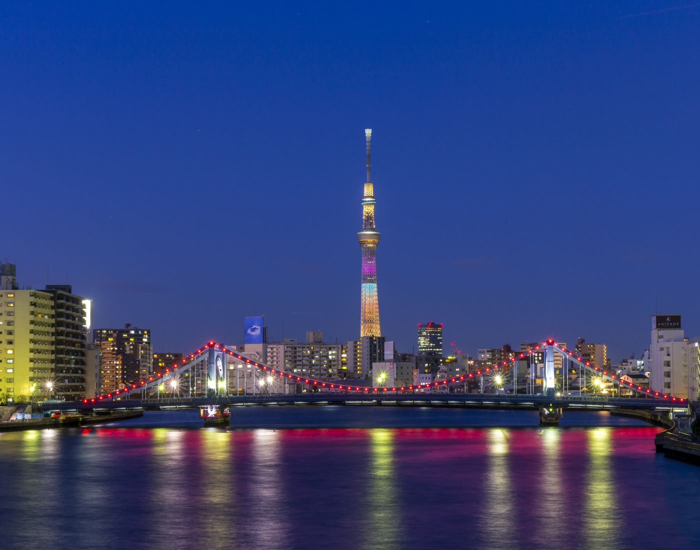 横跨隅田川的清洲桥距清澄百合站5分钟步程。这里可以欣赏到东京晴空塔等景色。在附近的清澄庭园散完步,可以到这里度过一段悠闲的午后时光。当太阳下山之后,清洲桥优雅的轮廓就会被闪亮的彩灯描绘在夜幕之中。不管是业余还是专业的摄影师都可以轻易拍下壮丽的光景。清洲桥是日本首座自锚式钢铁悬索桥,在日本建筑史上具有非凡意义,所以被国家指定为重要文化财产。其原型是德国科隆市的兴登堡桥。