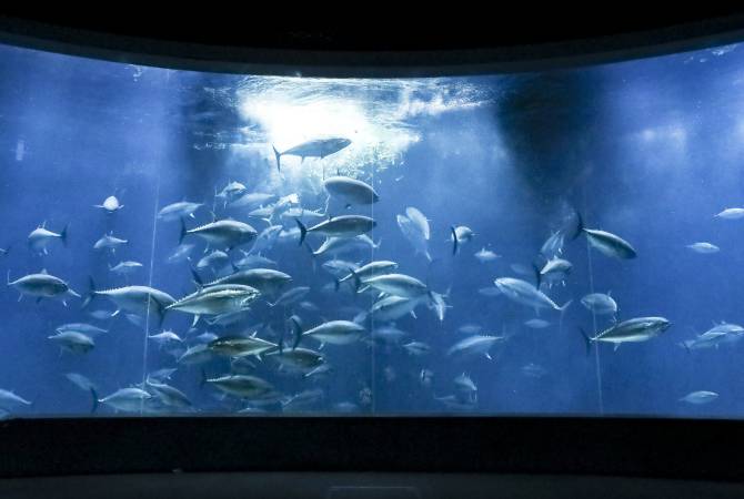 - 水族馆的招牌看点是在2,200吨容量的巨大水槽内,有太平洋黑鲔在以飞快的速度群游。