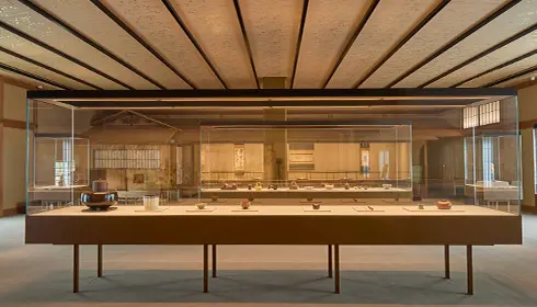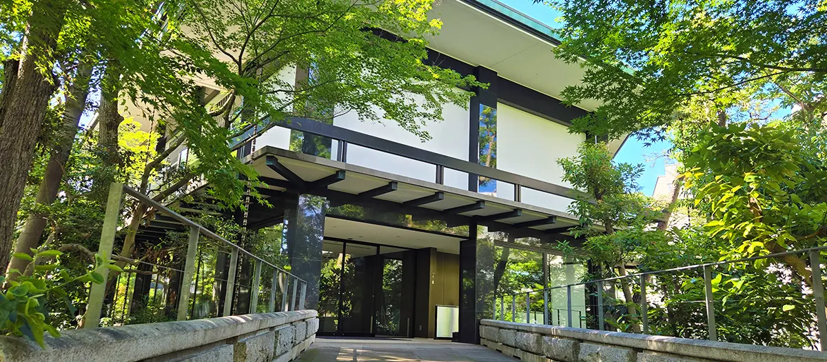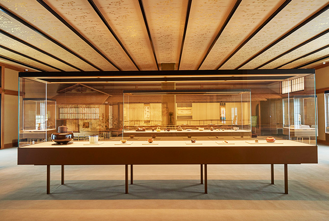 荏原畠山美术馆(旧称:畠山纪念馆)于1964年开馆。荏原畠山美术馆拥有许多历史悠久的茶具和美术作品。本美术馆收藏了包括6件日本国宝和33件日本重要文化财在内的共约1,300件藏品。不仅如此,荏原畠山美术馆的庭园和建筑也具有独特的魅力,充分体现了茶道的世界观。参加茶会时,在茶会开始前走过庭院能让心情焕然一新。这里的庭园风格再现了露地(带茶室的庭院),因此,从正门进入庭园,稍走几步就能看到美术馆的入口。展示厅内的小茶室“省庵”,其壁龛柱使用了奈良东大寺的古木。创立者畠山即翁(畠山一清1881-1971)没有在天花板上设置照明设备,而是将龙村美术织物的飞云图案的纺织品贴在了天花板上,将日本自古以来的“阴翳礼赞”之美融入了近代建筑中。