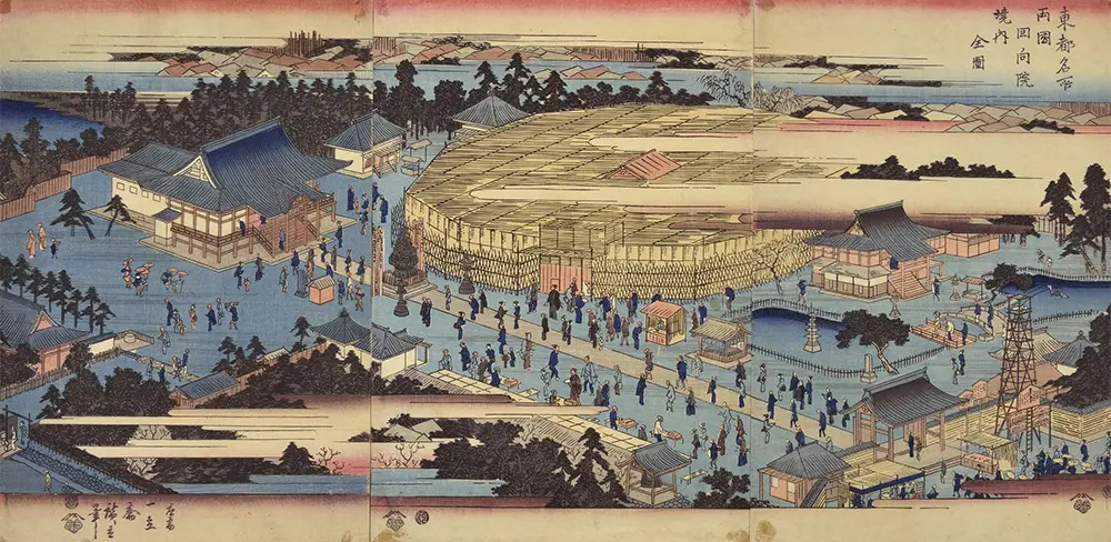 回向院是由德川第四代将军家纲所建的净土宗寺院,用于安葬于1657年发生的江户历史上最严重的灾害明历大火(振袖大火)的 10 万多名遇难者。该寺院以“无论是否有亲缘关系,向众生宣扬佛祖慈悲”为理念,被命名为“诸宗山无缘寺回向院”,之后此地也埋葬和祭奠着在安政大地震、关东大地震及东京大空袭等天灾人祸中的受害者、海难溺亡者、妓女、夭折早逝的孩子、被处决者以及各种动物等各种生命。