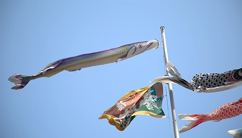 隐藏在鲤鱼中的是长6米的巨大“秋刀鱼旗”。