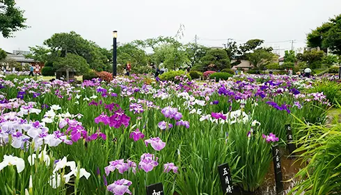 堀切菖蒲园的菖蒲花自古便作为菖蒲胜地而闻名,还对歌川广重及歌川丰国等艺术家的创作产生了影响。