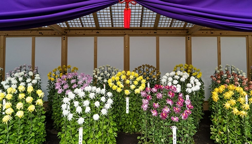 新宿御苑的菊花坛展是在名为“上屋”的棚下进行艺术展示的花展。您可以一边漫步在九曲回肠的小路上,一边欣赏日本庭园丰富多彩的颜色和独特样式的菊花。