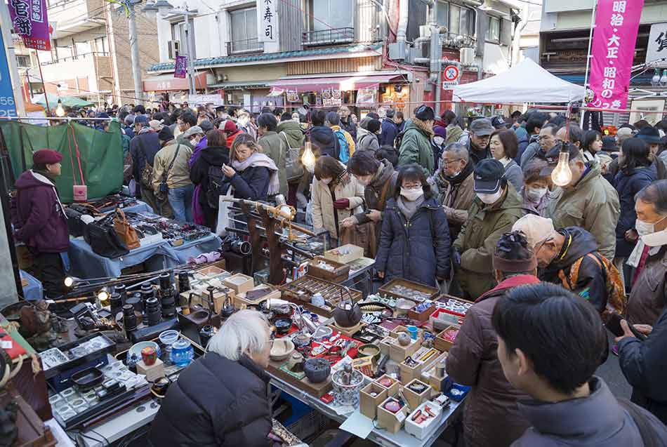 世田谷旧货集市从1578年连续举办至今,现已正式被指定为东京都无形民俗文化财之一。“旧货”是指过去曾是市场主要交易物品的旧布料碎片。如今的集市则有销售日用品、饰品、玩具、植物等各种商品的许多摊贩。游客们会一边逛店,一边吃着刚捣好的一种名为“代官饼”的年糕。此外,还有许多古董商店和二手衣店保留着旧货集市当时的风情。