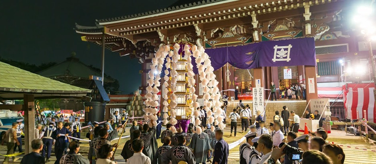 值得一看的是怀念日莲的万灯练供养。万灯是用樱花装饰的像高塔一样的灯笼,会有约3000人手持这些灯笼从池上站走到本门寺,全程约2公里。每年约有30万人参加,由此可以看出此节日非常受欢迎。万灯练供养和临灭度时法事还将同时在线上直播。