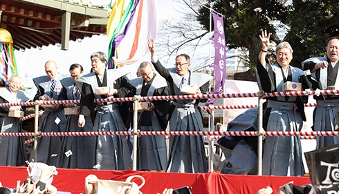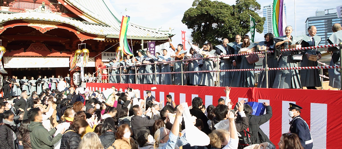 神田明神是镇守于东京已有约1,300年历史的神社。其节分祭活动是由赤鬼、青鬼、大黑天神、惠比寿神,以及向地面撒豆子的人们所组成的游行队伍来展开序曲。