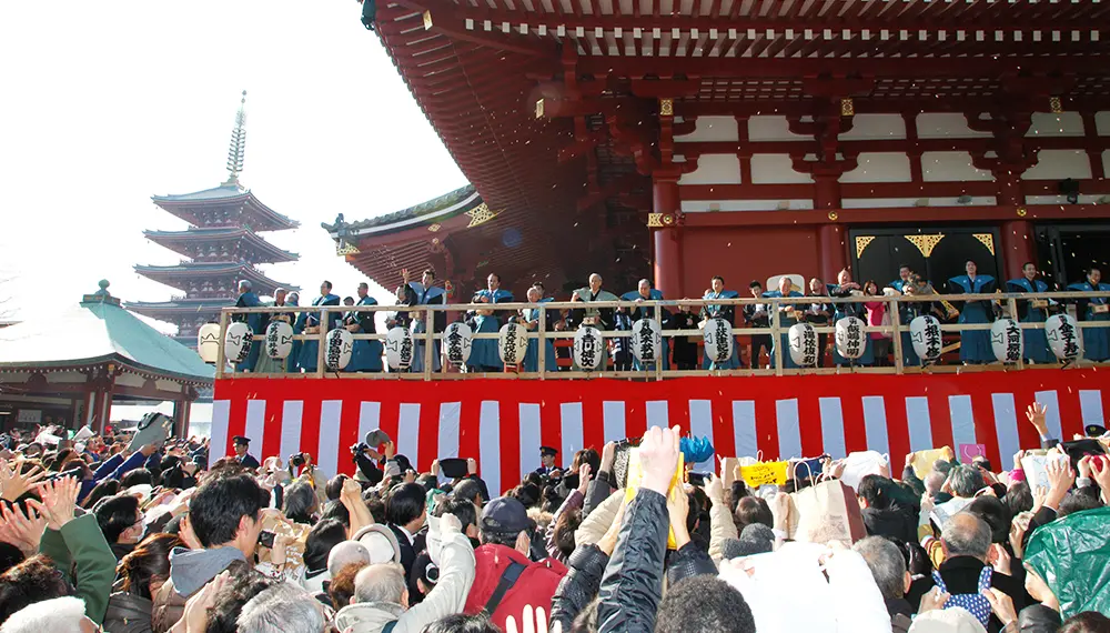 节分是日本全国在冬季尾声时进行的一项传统仪式,一般会撒豆子以驱除邪气,祈求好运。活动中,对“鬼”(由人穿戴面具及服饰来假扮)投掷豆子的行为称为“撒豆”,是全日本小孩都很喜欢的仪式。举办“节分会”的寺庙及神社有大国魂神社、浅草寺、增上寺等(人们认为浅草寺没有鬼,所以浅草寺的特点是不会说一般撒豆子时会喊的“驱鬼”)。
