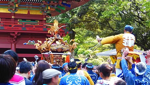 根津神社每年9月会举办“根津神社例行大祭”。据传其历史可追溯到1714年,现场除了上演传统舞蹈之外,也会设置各种摊贩。此外,池袋会举办“袋祭”,品川会举办“品川驿站祭”。届时会有大规模游行,地区融为一体一起庆祝。