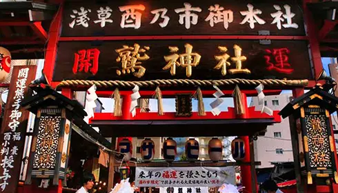 11月的传统庆典包括东京各地神社寺庙在特定日期举办的“酉市”,其中,长国寺和鹫神社举办的“酉市”最盛大。您可在现场选购一把有着华丽装饰的熊手(竹耙形吉祥物),用以祈求开运招财。
