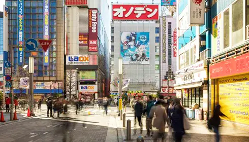 Die Straßen von Akihabara waren einst die Heimat von Schwarzmarkthändlern, die in der Nachkriegszeit Elektronikteile verkauften, inzwischen sind sie aber gefüllt mit seriösen Elektronikhändlern, die alles verkaufen, was mit Strom läuft. Fachgeschäfte säumen die Straßen, und Elektronik-Megastores wie Laox und Yodobashi Camera stehen in hartem Wettbwerb miteinander. Akihabara Radio Kaikan führt Anime- und andere Fanartikel („Character Goods“), während Akihabara Radio Centre Radio- und Elektronikgeräte für Amateure anbietet. Diese Läden kompensieren ihre geringe Größe mit einer brennenden Leidenschaft für das Interessengebiet, das sie sich ausgesucht haben. Viele Geschäfte bieten auch zollfreies Einkaufen an, um Ihnen zu dabei helfen, mehr für Ihre Yen zu bekommen.