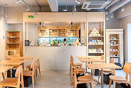 Hier lautet das Motto „Tee essen“, und das Restaurant, dessen Angebot Mittag- und Abendessen sowie Café-Spezialitäten und Gerichte zum Mitnehmen umfasst, bietet zahlreiche Möglichkeiten, dies in die Tat umzusetzen. Neben Desserts wie Grüntee-Parfait und Matcha-Amazake-Affogato finden Sie hier auch mit Tee gewürzte Pommes frites, Würstchen mit Tee-Geschmack, Bastardmakrele mit Matcha, in Hojicha gebratenes Schweinefilet und andere kreative Kombinationen. Das Getränkeangebot umfasst Matcha-Wein, Matcha-Bier – alkoholfrei und alkoholhaltig – und Grüntee-Pflaumenwein.