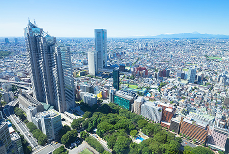 Der Sitz der Tokioter Stadtverwaltung (Tokyo Metropolitan Government) bietet eine der besten Aussichten auf Tokyo – und zwar kostenlos. Die beiden Aussichtsplattformen des Gebäudes in der 45. Etage bieten einen hervorragenden Blick auf die Stadt und den Berg Fuji. Die beste Chance, den Berg Fuji zu sehen, haben Sie zwischen Dezember und Februar, wenn die Sicht am klarsten ist.