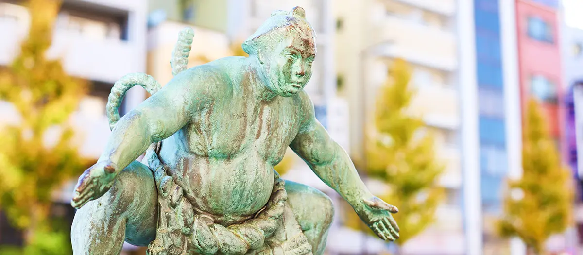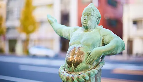 Nur wenige Schritte vom Westausgang des Bahnhofs Ryogoku entfernt befindet sich die Kokugikan-Straße, eine Straße, die von Bronzestatuen von Sumo-Ringern gesäumt ist, die in verschiedenen Posen erstarrt sind. Diese reichen von mächtigen Körperhaltungen bis hin zu zeremoniellen Gesten. Auf den Sockeln gibt es außerdem bronzegegossene Handabdrücke ehemaliger Yokozuna, dem höchsten Rang im Profi-Sumo, zu bestaunen. Diese vermitteln einen anschaulichen Eindruck von der Kraft der angesehensten Ringkämpfer im Sumo.