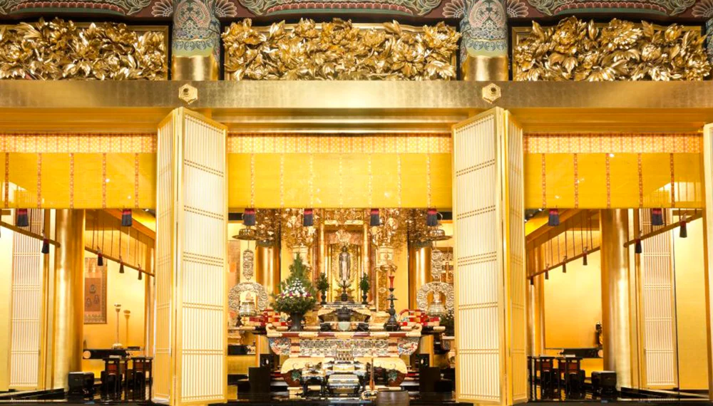 Dieses markante Gebäude im Tokioter Stadtteil Tsukiji, der in der Nähe der Ginza liegt, unterscheidet sich deutlich von jedem anderen buddhistischen Tempel, den Sie in Japan finden können. Seine Architektur ist ein merkwürdiges Amalgam von Einflüssen, obwohl die aufwendige Steinfassade am ehesten an die traditionellen Formen und Motive antiker buddhistischer Denkmäler auf dem asiatischen Festland erinnert. Deshalb hat die japanische Regierung den Tempel zu einem wichtigen Kulturgut erklärt.