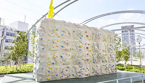 Der öffentliche Park auf dem Dach bietet einen Skateboardplatz, eine Boulderwand und ein Sandspielfeld, das den Besuchern die einzigartige Möglichkeit bietet, im Stadtzentrum Beachvolleyball zu spielen. Natürlich gibt es auch Grünflächen, auf denen Sie sich kurz entspannen und inmitten der Energie von Shibuya Ihre innere Mitte finden können.