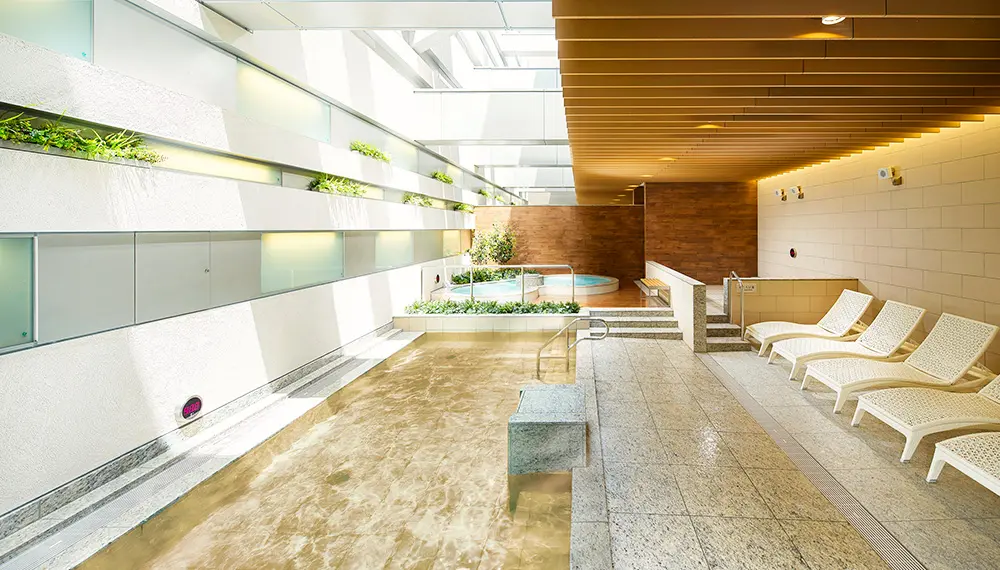 Ariake Garden umfasst auch einen Wellnessbereich, den Sie zu einem ermäßigten Preis nutzen können, wenn Sie im Hotel zu Gast sind. Das Wellnesscenter umfasst Saunen und Schönheitssalons sowie eine natürliche heiße Quelle, deren Wasser aus großer Tiefe hochgepumpt wird. Da sowohl das Hotel als auch das Wellnesscenter zu Ariake Garden gehören, können Sie sich dort direkt nach Ihrem Einkaufsbummel entspannen und ausruhen.