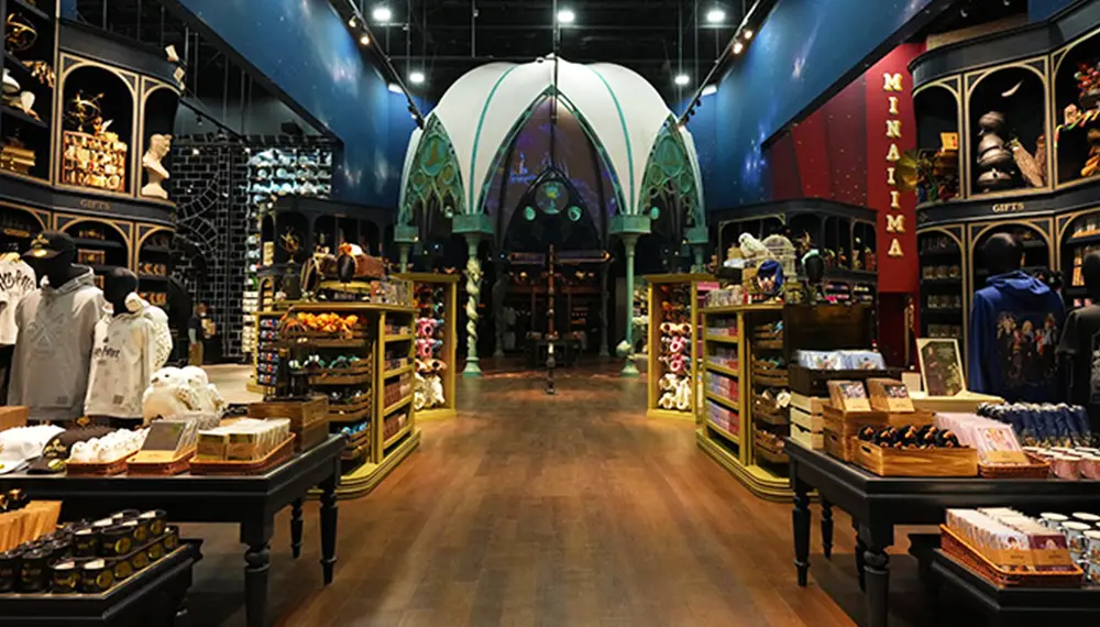 Der Hauptgeschenkeladen bietet eine große Auswahl an Artikeln mit Harry Potter-Bezug, von denen einige ausschließlich in dieser Einrichtung erhältlich sind. Im Shop werden Kleidung, Tassen, Kunstdrucke und andere Andenken verkauft. Sie können ein Plüschtier erwerben, das einem Zauberwesen nachempfunden ist, oder Ihren persönlichen Zauberstab mit nach Hause nehmen.