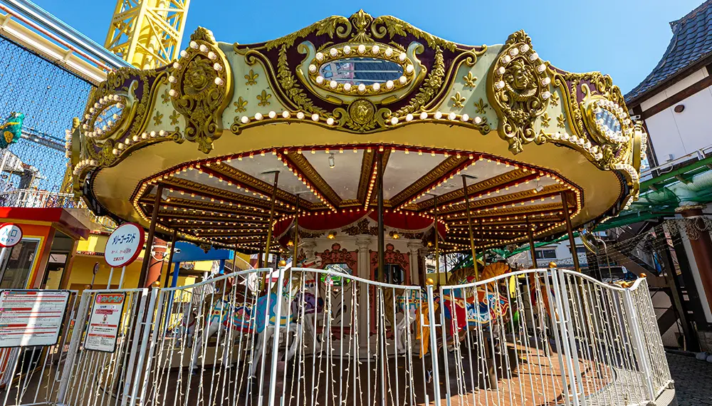 Der Asakusa Hanayashiki-Vergnügungspark verfügt über 19 Attraktionen, die sich um das Thema Karneval drehen. Der Park liegt im malerischen Viertel Asakusa und zeichnet sich vor allem durch seine nostalgische Atmosphäre der 1950er Jahre aus, mit einer klassischen Achterbahn und einem Spukhaus. Kinder können sich auf ruhigere Fahrgeschäfte wie das Kiddy Taxi und Sky Ship freuen.