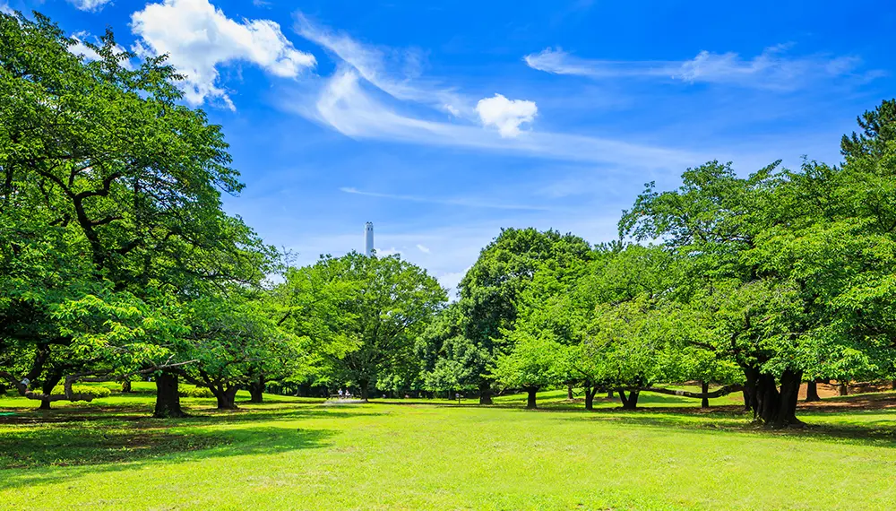 Dieser ehemalige Kasernenkomplex und Flugplatz im Norden von Tokio ist heute ein weitläufiger Park voller offener Flächen und baumbestandener Pfade. Verbringen Sie Zeit in der Natur zwischen 17.000 Bäumen und unzähligen Blumen. Mit rund 1.000 Kirschbäumen und weitläufigen Wiesen ist dieser Park im Frühling auch ein idealer Ort für Picknicks unter den Kirschblüten, und die von Ginkgobäumen gesäumten Wege laden dazu ein, die leuchtende Herbstfärbung zu bewundern. Zu den weiteren Einrichtungen gehören Felder für verschiedene Sportarten, ein Grillplatz (Reservierung erforderlich), ein Vogelschutzgebiet (nur an Wochenenden und Feiertagen geöffnet), ein Teich und Spielplätze für Kinder.
