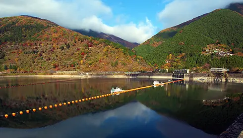Der Okutama-See, der entstand, als der Ogouchi-Damm über den Tama-Fluss gebaut wurde, ist landschaftlich überaus reizvoll. Der See und seine Umgebung sind von allen Seiten von Bergen umgeben und bieten einen bequemen Zugang zu unberührter Natur, wie man sie im Stadtzentrum nicht finden kann.
