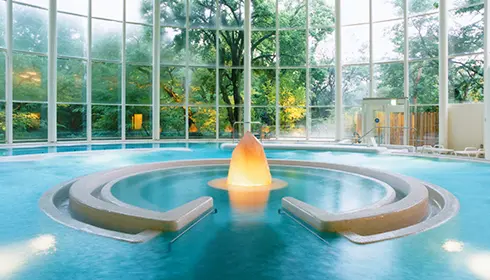 Die Anlage umfasst Bäder im Innen- und Außenbereich sowie eine Sauna mit jeweils unterschiedlichen Temperaturen. Der für Badekleidung zugängliche Bereich „Baden“ verfügt über den Baden-Pool, eine finnische Außensauna, und im Freien einen natürlichen Whirlpool sowie einen Weichwasser-Whirlpool. Ein Restaurant, eine Lounge und ein Ruhebereich, in dem verschiedene Gesundheits- und Beauty-Anwendungen angeboten werden, sind ebenfalls vorhanden.