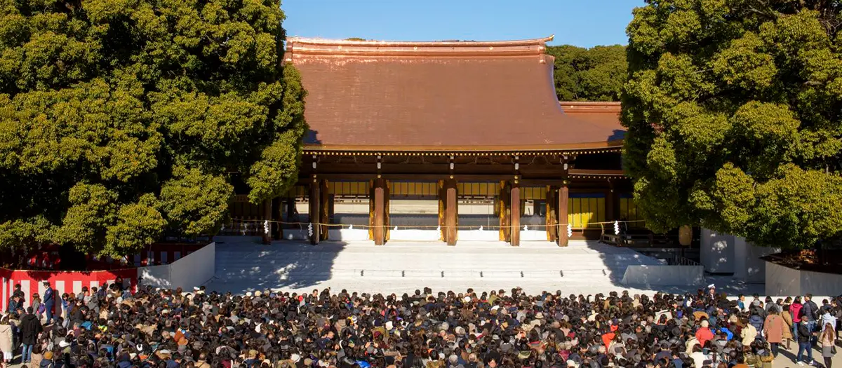 Der Meiji-Jingu-Schrein ehrt Kaiser Meiji und Kaiserin Shoken, die Japan in der zweiten Hälfte des 19. Jahrhunderts durch eine Phase der rasanten Modernisierung führten. Um den ausgedehnten Wald der Anlage, der sich über etwa70 Hektar erstreckt, anzulegen, wurden etwa 100.000 Bäume verpflanzt, die aus ganz Japan gespendet wurden. Der Schrein feierte im Jahr 2020 sein 100-jähriges Bestehen.