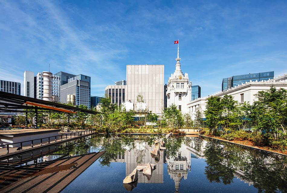 - Am heutigen Mitsukoshi-Gebäude in Nihombashi, das ein atemberaubendes und majestätisches Flair im Renaissance-Stil ausstrahlt, wurden sechs Jahre lang Renovierungen und Erweiterungen vorgenommen, die 1935 abgeschlossen wurden. Besonders bemerkenswert ist die an einen Blumengarten erinnernde Pracht der zentralen Halle mit französischem gesprenkeltem rotem Marmor und italienischem Eigelbmarmor unterhalb einer grandiosen Oberlichtdecke. Im Juli 2016 wurde diese Halle als wichtiges nationales Kulturgut ausgewiesen.