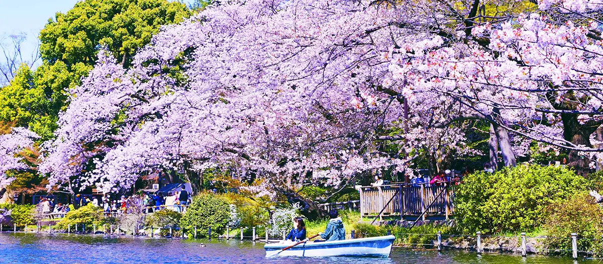 Die Kirschblüte ist Anfang April eines der Highlights in Tokyo. Es gibt zahlreiche äußerst beliebte Veranstaltungen, wie das Chiyoda-Kirschblütenfest entlang des Chidorigafuchi-Wegs auf der Westseite des Kaiserpalastes, das Ueno Sakura Matsuri (Kirschblütenfest) im Ueno-Park und das Sakura-Fest im Sumida-Park. Die Blütenblätter wirbeln wie Schneeflocken durch die Luft, fallen herab und treiben auf der Oberfläche der Flüsse, wodurch typische Frühlingsszenen entstehen.
