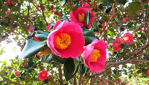 Die Inseln von Tokyo feiern ihre atemberaubende Blumenpracht bei jährlichen Festen. Beim Kamelien-Fest Izu Oshima Tsubaki Matsuri bietet sich Ihnen die Möglichkeit, das Färben mit Kamelienblüten auszuprobieren. Und beim Freesien-Fest auf der Insel Hachijojima können Sie eine Teezeremonie im Freien genießen, während Sie den Blick über die farbenfrohen Blüten schweifen lassen, und im Freesien-Café lokale Süßigkeiten verkosten.