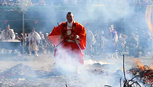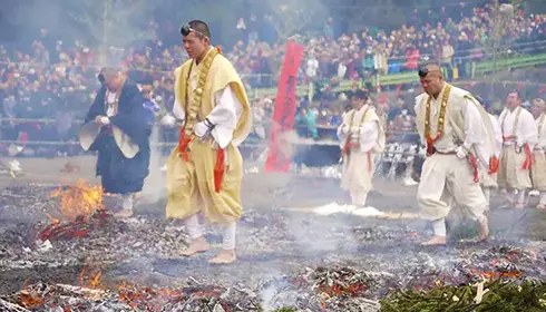 Der buddhistische Tempel Takao-san Yakuo-in, der auf halber Höhe des Berges Takao liegt, veranstaltet jedes Jahr am zweiten Sonntag im März ein Feuerlauf-Fest, bei dem für Gesundheit und Schutz gebetet wird. Während des Festes wandeln Mönche barfuß über glühende Holzkohlen – eine traditionelle Askeseübung. Nachdem die Glut erloschen ist, können Sie sich anschließen und selbst versuchen, darauf zu laufen.