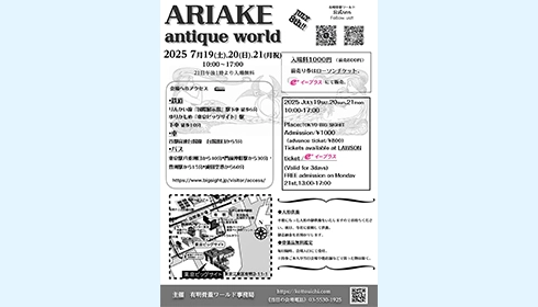 Ariake Antique World is one of the largest antique fairs in Japan. Dealers from all over Japan come to Tokyo Big Sight to sell all sorts of antiques and curios, including toys, swords and museum pieces. The volume and variety of the products on offer is astonishing. Free antique appraisals are available. For a fee, you can also give your old dolls a traditional, ritual send-off.