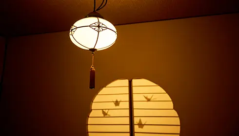 A traditional Japanese-style lampshade once used in a ryotei