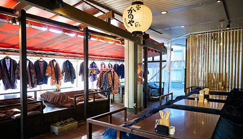 Juwari Soba Iya-iya Gohai To Honke Kanoya brings together two pleasures that define Japanese winters: buckwheat soba noodles and the warm comfort of kotatsu. Located just a 5-minute walk from JR Yoyogi Station, the restaurant features an enclosed terrace lined with individual kotatsu tables fitted with heating units and thick quilts, inviting you to slide underneath and relax as you dine. Traditional Japanese "hanten" – warm kimono-style coats – are also available for you to wear, adding to the traditional ambiance and making for great photo opportunities.