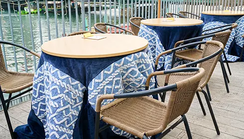 Along the Sumida River quite near Asakusa, ASAGE CAFE offers kotatsu seating with an urban riverside twist. The cafe features an outdoor terrace that transforms into a seasonal kotatsu lounge each year from November to April. The kotatsu here are set outdoors in a modern chair-style arrangement, where guests sit on chairs and place their legs under a round table covered with a quilted blanket. This contemporary take on kotatsu feels fresh even to Japanese visitors, offering a stylish and modern way to enjoy the tradition. Settling under a kotatsu alongside the Sumida River against a crisp winter breeze is a certain Tokyo luxury.