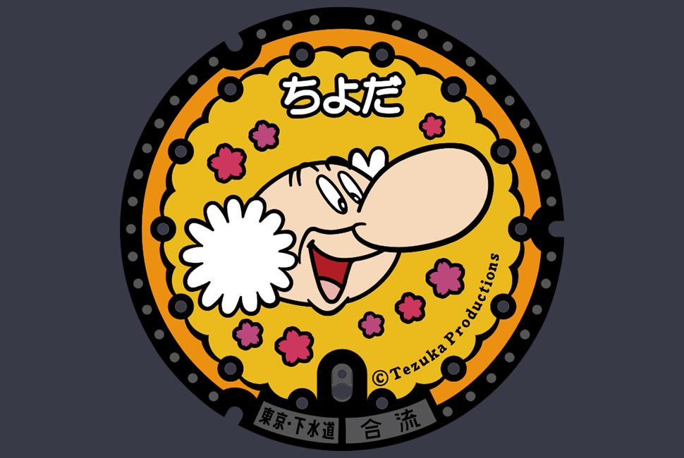 Custom-designed manhole covers featuring Astro Boy (Atom) characters and the sakura (cherry blossom), Chiyoda City's official flower, can be found along Meidai-dori Street, which begins at Ochanomizu Station. In the original manga and anime, Astro Boy (Atom) is a student at Ochanomizu Elementary School and receives instruction from the father figure-like Dr.Ochanomizu, reflecting a deep connection with the Ochanomizu area in Chiyoda Ward. The manhole covers come in three types: Astro Boy (Atom), Uran Dr.Ochanomizu.