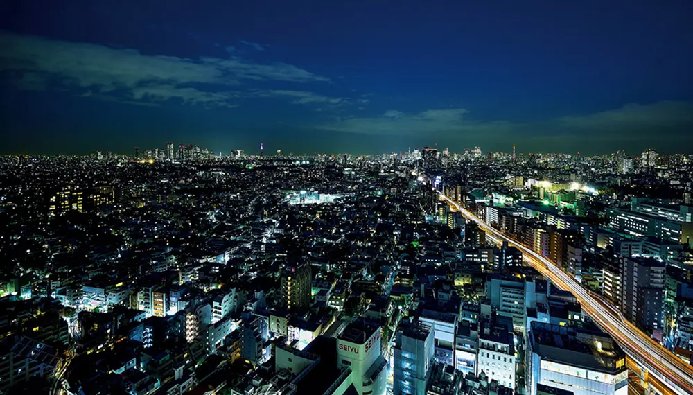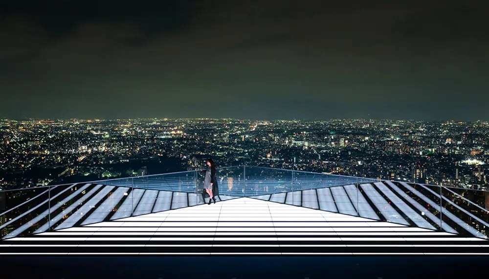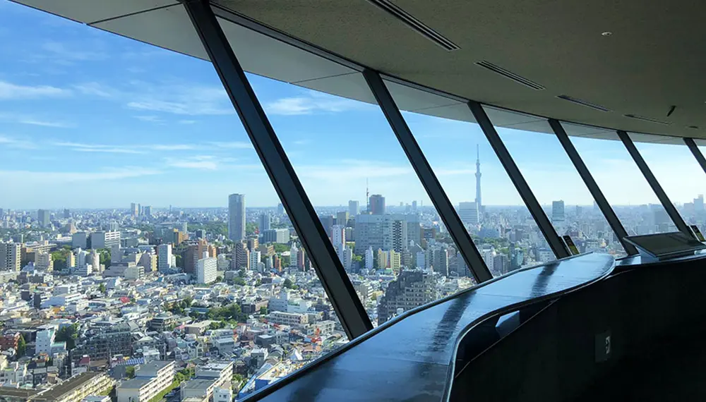 There are many places to go up to catch a sweeping view of the Tokyo cityscape. In high-rise-heavy districts like Shinjuku and Shibuya, there are bars and restaurants situated near the tops of buildings where you can gaze out on the urban expanse. There are also many spots that are landmarks in their own right, and that offer fantastic views and fun attractions. One example is Sunshine 60 Observatory Tenbou-Park, an indoor "park in the sky" where you can enjoy a picnic. Another is the Mori Art Museum on the top floor of the Roppongi Hills Mori Tower.