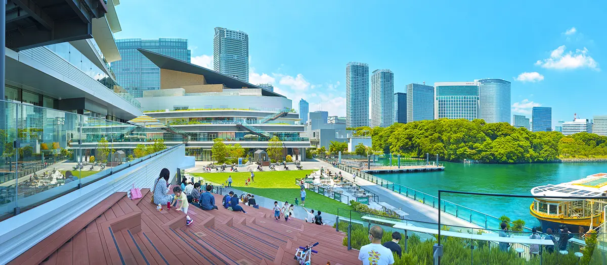 Close to the mouth of the Sumida River, the Takeshiba and Hinode area is a waterfront district known for its passenger boat and cruise ship terminal as well as a boardwalk with panoramic views of Tokyo Bay. This neighborhood has been recently updated with new facilities, making it an even more enjoyable place to relax and appreciate the open air with sweeping vistas.