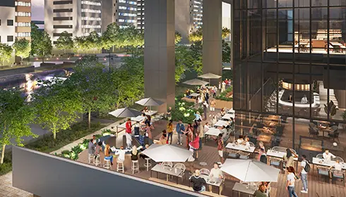 En 2025, esta evolución da un salto audaz hacia el futuro con Blue Front Shibaura –un complejo polivalente centrado en el nuevo rascacielos TOWER S en el frente marítimo. A un paseo de solo 6 minutos de la estación Hamamatsucho, el complejo reúne oficinas, un hotel, tiendas y viviendas, conectado directamente con el Aeropuerto de Haneda con el Tokyo Monorail y servicios de taxi acuático. Blue Front Shibaura está atrayendo la atención como un área nueva área que es perfecta como primera parada y también como base para explorar Tokio.
