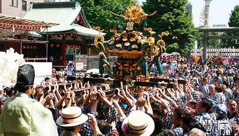 Mayo – Únete a la danza en el Sanja Matsuri, uno de los festivales de Tokio más energéticos y animados.