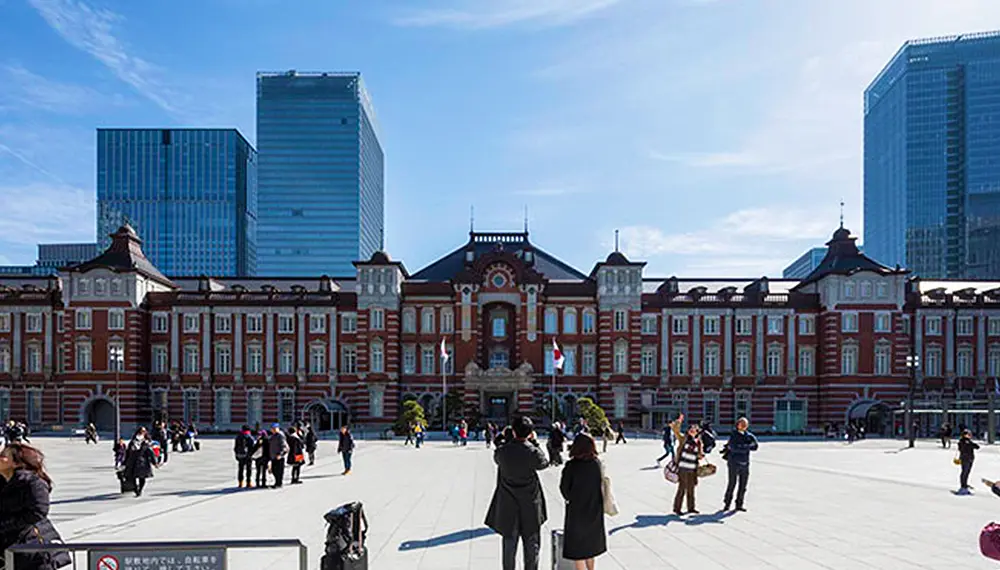 Deslizándose con elegancia, los shinkansen entran y salen de esta estación que se alza junto a los rascacielos del distrito financiero de Marunouchi, salpicado con lujosos hoteles y distinguidos paseos arbolados llenos de tiendas. Este ajetreo urbano se encuentra a cierta distancia del Palacio Imperial – un oasis de calma en pleno centro de la ciudad.