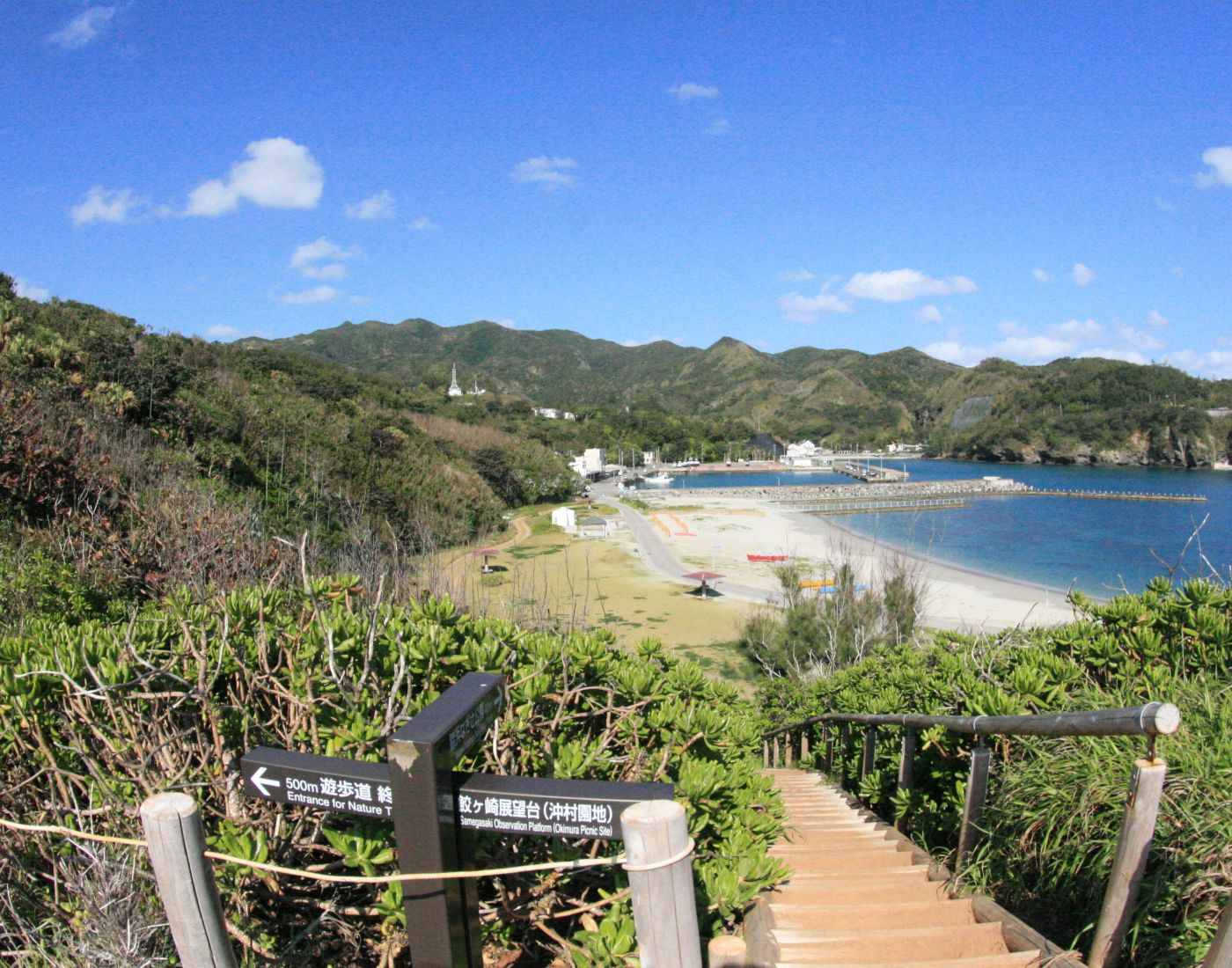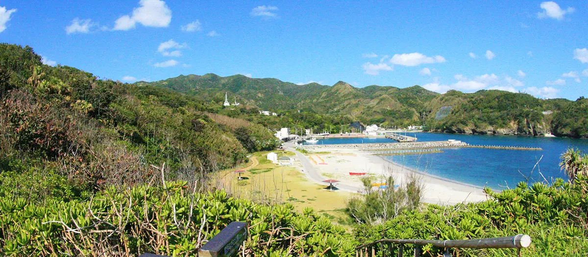 Desde el Mirador de Samegasaki en la Isla de Hahajima, disfruta de vistas panorámicas del Puerto de Oki y ve alguna ballena a lo lejos en el mar de vez en cuando. Con el techo hecho con palmas Chusan, este mirador te deja sentir el ambiente tropical. Además, podrás llegar a pie fácilmente al mirador.