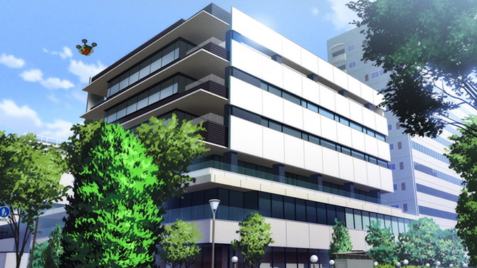Escena en la que aparece el Edificio Kotobukiya en el anime "Frame Arms Girl"©KOTOBUKIYA / FAGirl Projec
