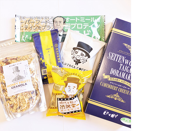 Además de los productos Shibusawa-kun, también venden productos alimenticios que contienen avena, que era la comida favorita de Shibusawa-ou. Asimismo, podrán disfrutar de la tienda aprendiendo historia con objetos que contienen las enseñanzas de Shibusawa-ou o productos relacionados con el nuevo billete de 10 mil yenes.